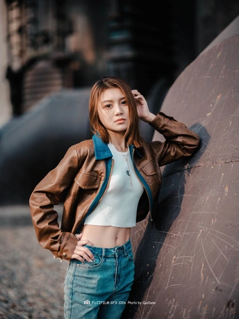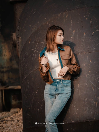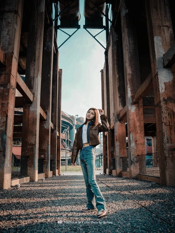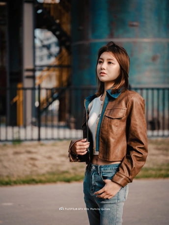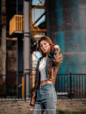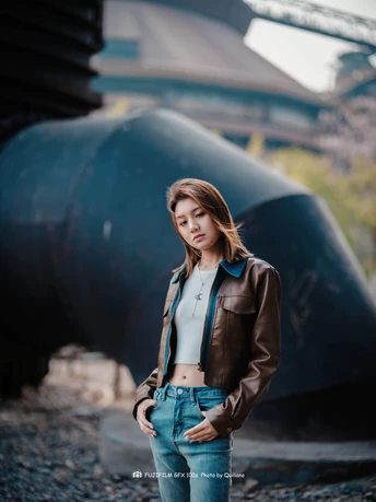 上周六给大家分享完富士相机技法——环境人像拍摄的PPT之后,带领大家沿着金安桥科幻广场绕了一圈,前往我预先找好的机位拍人像。 模特穿着的皮衣与首钢园的大熔炉、大机械非常搭配,后期我用ASTIA为基础,调了一个偏青绿的色调。 闲逛的同时也注意到还有很多机位可选,拍建筑、拍人像都行,留着下次在拍。