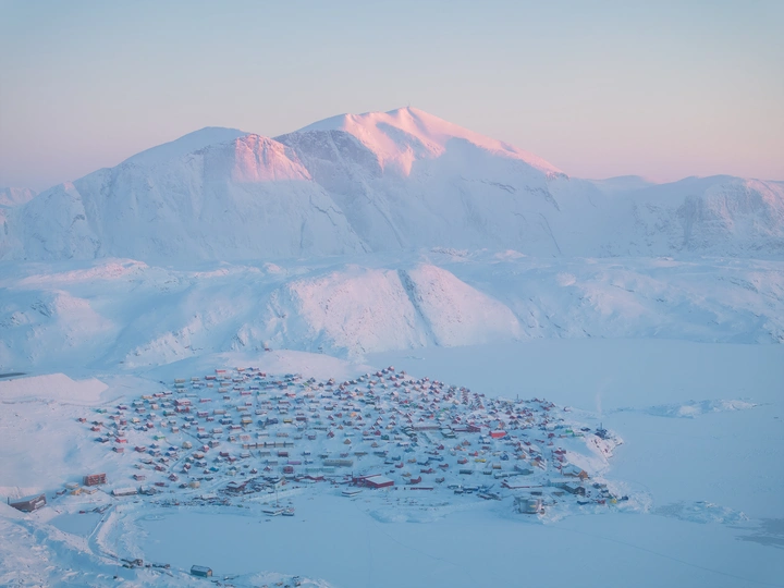 冬季的格陵兰岛Upernavik小镇,周围整个世界都覆盖上了一层厚厚的冰雪,连大海也不例外。 御3Pro拍摄,iso100 f2.8 70mm 1/120s