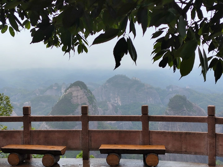 最近都在下雨,趁着中午出发到了丹霞山,虽然天气不好,至少不下雨,丹霞山被云雾缭绕也是别一番风味。 这自然景观很美,一路上被叹为观止,但更多是腿软,几乎走遍了,还差个虎头岭就走完了这整块景区。