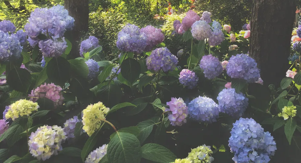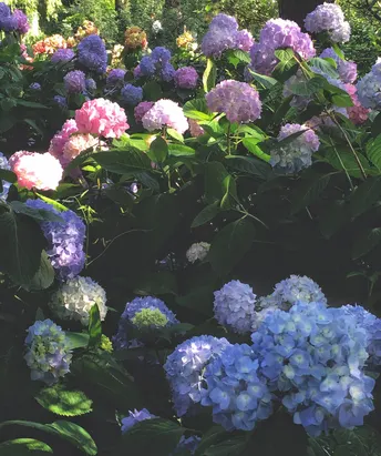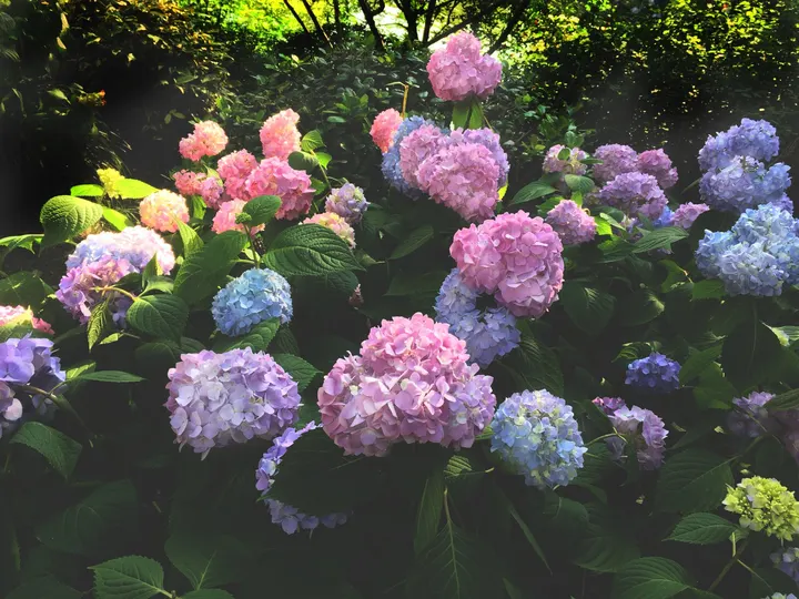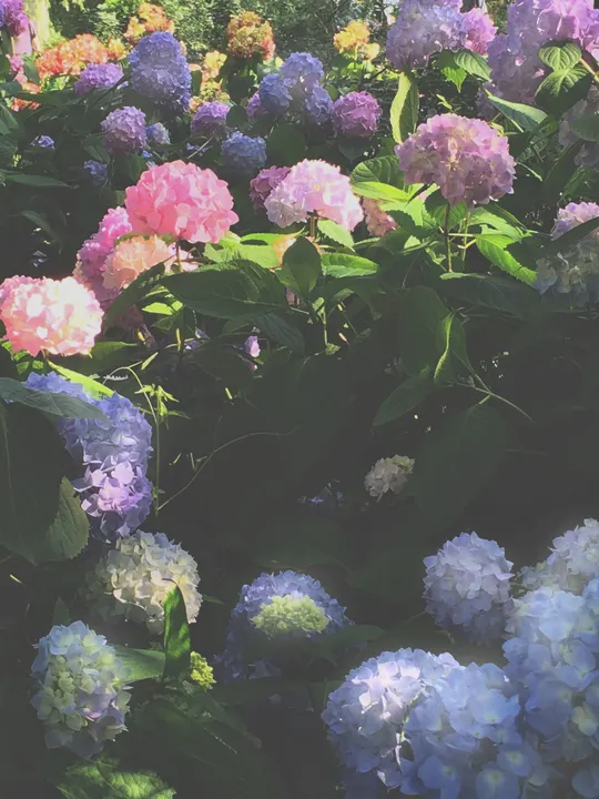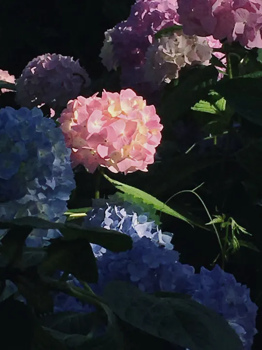 绣球的多样性花色令人着迷。一大丛花球竟然能有4到5种颜色。冷色和暖色搭配相宜。