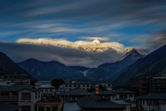 西藏南迦巴瓦峰,日照金山之景,壮丽非凡。金光洒落,山峰熠熠生辉,仿佛身披金甲。帽子云缭绕其间,如梦似幻,宛如仙境。站在峰顶,俯瞰云海翻滚,心潮澎湃,仿佛与天地同呼吸,共命运。此等美景,令人陶醉,流连忘返。