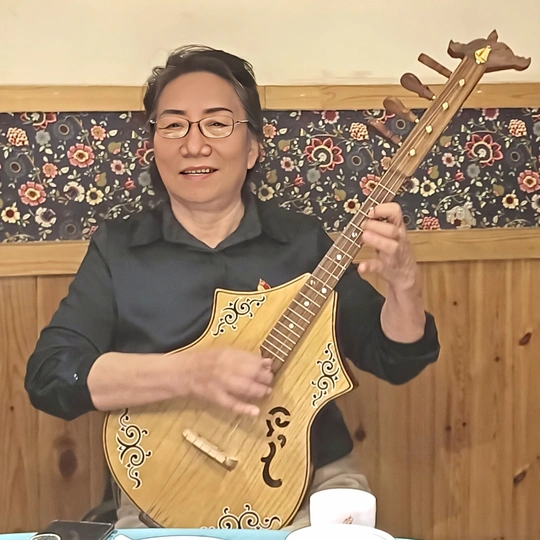蒙古琵琶,又称好必斯,蒙古族弦鸣乐器,弹拨类,音箱呈瓢形,薄木板盖面。板面左 右各开一月牙形音窗,边沿绘民族图案, 下部两侧绘云卷图案,头部较长并向后 弯,左右各设弦轴两个。颈部设四相、十 三品,张丝弦四根。常用以独奏或歌舞伴奏。古代宫廷乐队亦曾用。