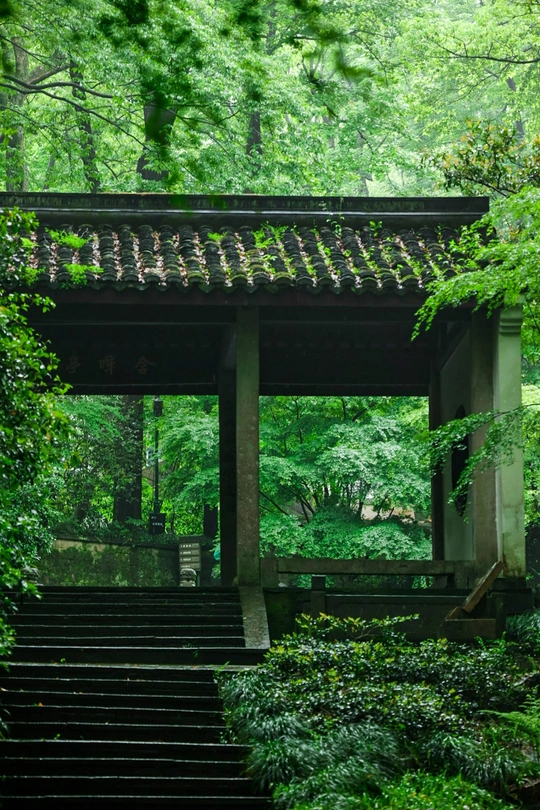雨后的虎跑梦泉,被滋润过的绿意格外透亮。森林梦境的泥土芳香仿佛穿越古今,沁人心脾。