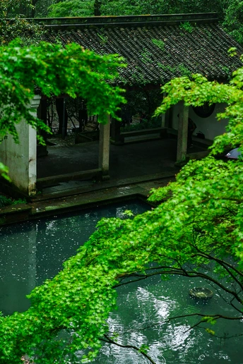 虎跑梦泉,沁人绿意。