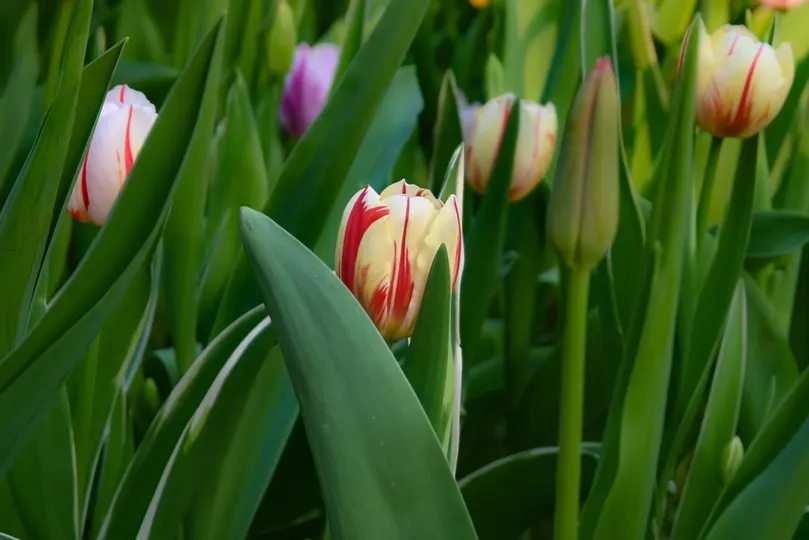 每年都回在春天去看看中山公园的郁金香。 郁金香的花期不长,正好家离中山公园不远。 选了一个有限的午后,拿上相机,来到公园深处。 这些美丽的精灵有些躲在枝叶后面,有的大方的盛开。 有一种静谧的松弛感,因此拍了几张照片, 记录这份美好。
