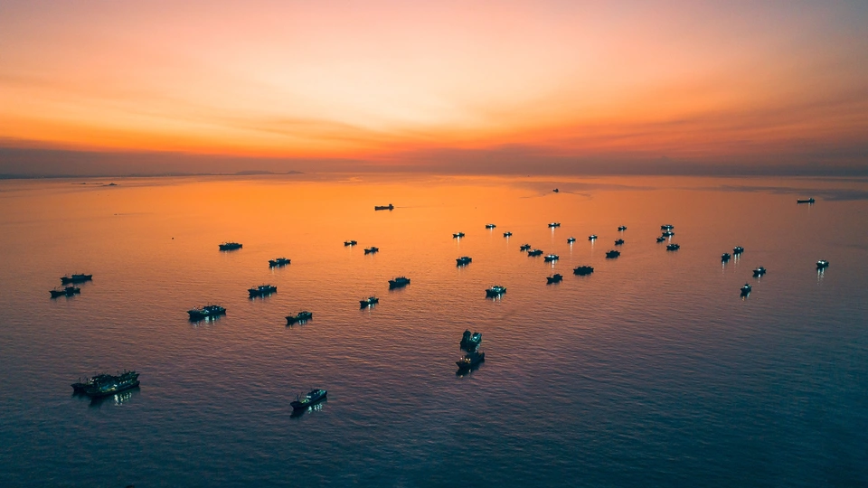 在祥芝开渔节这天,晨光熹微,渔船却已陆陆续续出海