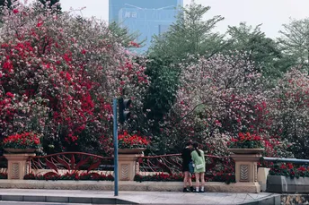 深大附近的红花羊蹄甲和三角梅相互交错!