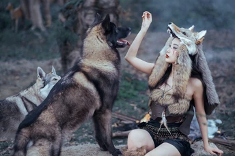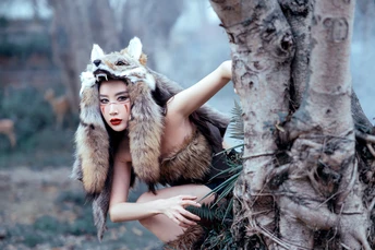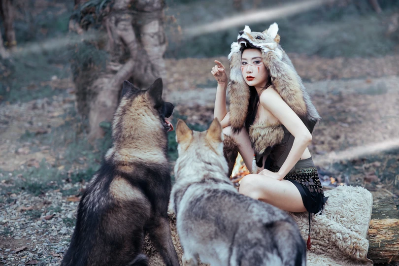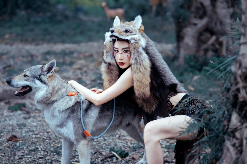 邂逅森林中的不羁之美 运用光影的魅力,将模特与狼之间的互动刻画得淋漓尽致。在这些照片中,我们可以感受到一种原始的力量,一种不受束缚的情感流露。每一幅画面都是一个定格的瞬间,却足以让人心潮澎湃。