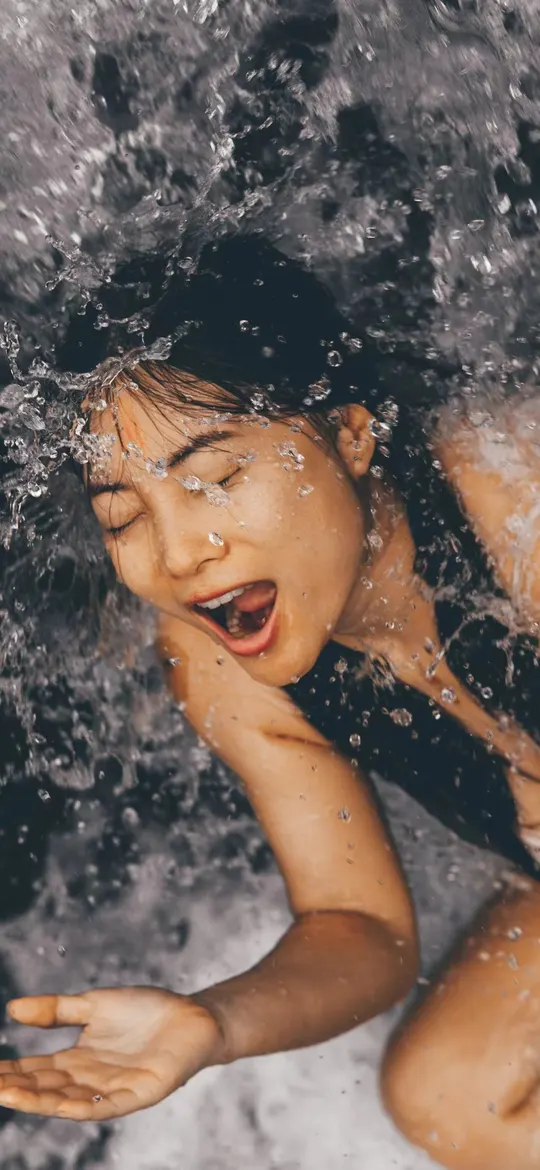 四月的早上想借着朝阳光线拍一组人与瀑布的对话、水温偏低、模特很给力、摄影师更厉害!片子出来果然惊艳!