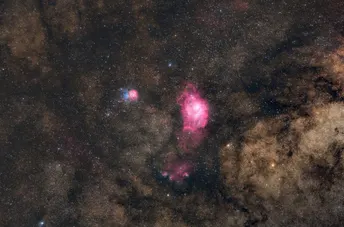 使用索尼 A7M1bcf与 70-200mmf2.8镜头拍摄 M8礁瑚星云与M20三叶星云 单张曝光25秒 累计4400秒 拍摄环境为一级区,所以短曝光拍摄效果仍不错 沙漠里大半夜一个人蹲了几个小时 还是很有趣的,就是会时不时一阵大风带着沙子来搞偷 袭,导致我的两个廉价三脚架进沙磨损报废,这让本不 富裕的家庭更是雪上加霜(