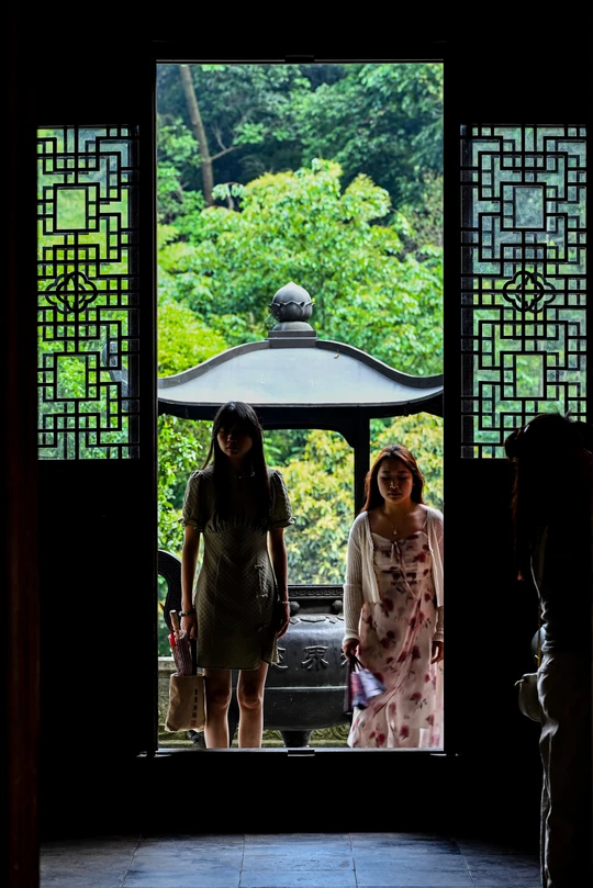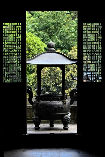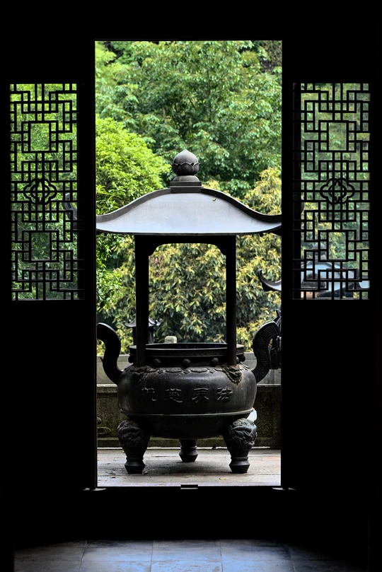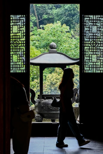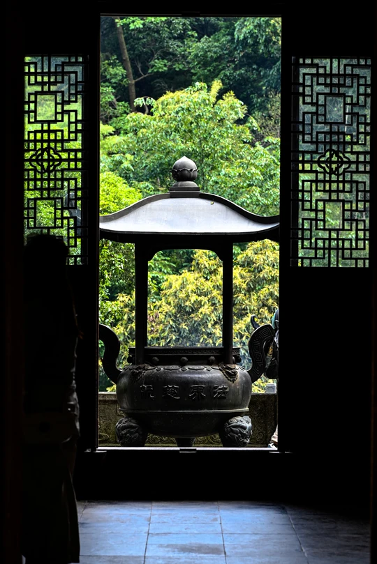 回眸,觉得透过门看香炉的机位很赞。 当摆好机位,刚摁下快门,取景屏里便有了过客。 也许,有人,才有了生命。 当快门过后,突然感到:也许,我们都只是过客。 感谢相机,让我们停留在了这一刻! 2024.5.8摄于韬光寺。