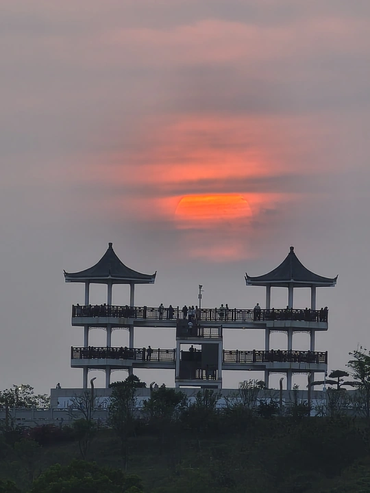 深圳五指耙松韵楼日落,薄云使得落日若隐若现,落日使得云彩微微泛红。 📷:sony A7R3+200600mm