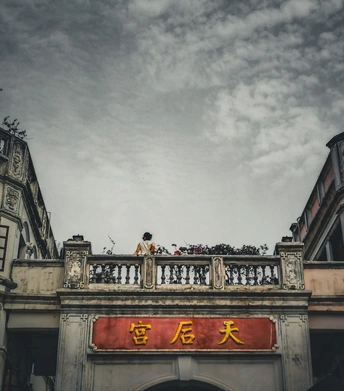 一名女子正在骑楼老街一处网红打卡点拍照。