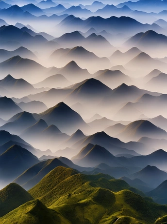 只见那些连绵不绝的山岭在云雾的缭绕中若隐若现,宛如一幅流动的水墨画。云雾轻轻地萦绕在山间,时而浓密如绸,时而稀薄如烟,给山岭增添了几分神秘与梦幻。在阳光的照射下,云雾呈现出五彩斑斓的色彩,仿佛是天地间的精灵在翩翩起舞,让人陶醉其中,流连忘返。