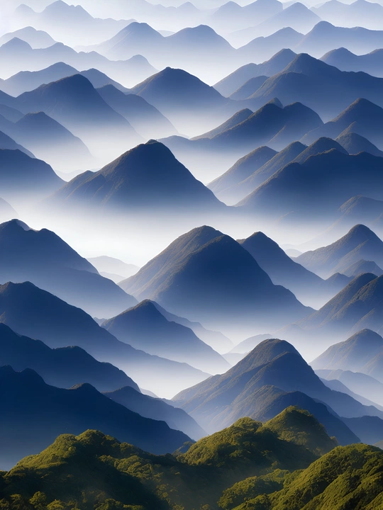 瞧瞧这山岭,简直就像被云朵当成大棉被给盖上了!那云啊,一会儿像薄纱,一会儿又变得厚重起来,好像在跟咱们玩捉迷藏。阳光也来凑热闹,时不时地从云层里探出头来,给山峰们撒点儿金粉,让它们显得更加气派。站在这儿看,简直就是一场视觉盛宴啊!哈哈,这山岭,真是有点儿调皮,但又美得让人心花怒放!