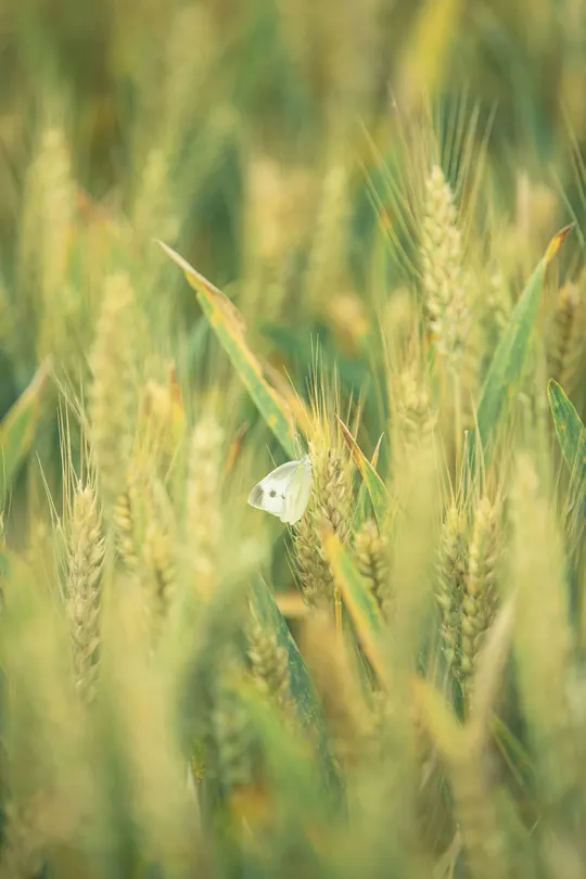 假期回家 看到成片的麦子黄了 蝴蝶随着麦浪起舞 站在田埂上 感受春天的气息 -