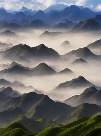 山岭啊,被雾气裹得严严实实,简直就像是传说中的仙境一般。你看那云雾缭绕的样子,每一座山峰都像是在玩捉迷藏,时而露出头来,时而又躲进云层里。这景色真是美得让人心醉啊,好像是大自然特意为我们准备的一幅水墨画,真是让人看了就舍不得移开眼睛。