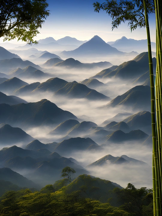 漫步于那片广袤无垠的竹海之中,周围是一片静谧而幽深的世界。微风拂过,竹叶沙沙作响,好似在诉说着古老的秘密。此时,一股神秘而朦胧的雾霭悄然缭绕,从竹林的深处慢慢弥漫开来,将整个林间笼罩在一片朦胧之中。那雾霭似乎带有某种魔力,让人不自觉地沉醉于这片如梦似幻的景致之中。