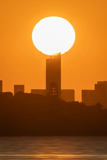 进入初夏,无锡迎来了难得的水晶天。极佳的空气质量带来极致的能见度,于是就有了这幅直线距离14公里外的日出。