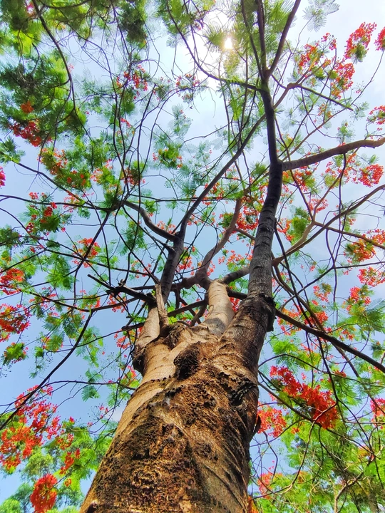 春天来了,它的红花压低了枝头,翡翠般的绿叶也非常讨喜。