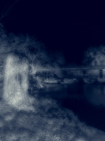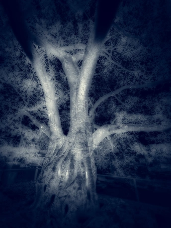 幽深阴暗的蓝色,象征着夜晚的平静,或危险和恐惧。因为在原始人的生活中,夜晚是食肉野兽出没的时候