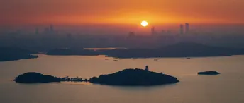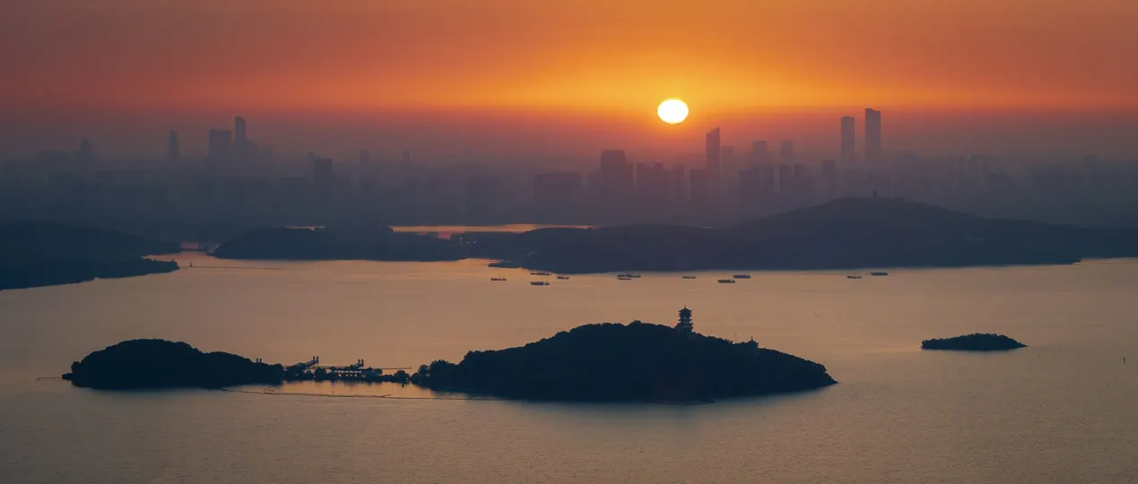 初夏5点,太阳从地平线喷薄而出,得益于近期极佳的空气质量,近处的鼋头渚太湖仙岛(三山岛)和远处城中的楼群一览无余。本片使用无人机7倍长焦手动接片完成。