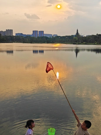2024年5月18日摄于成都,捕捉落日,捕捉童年。 《落日童年》拍摄于盛夏的天府艺术公园,捕捉了一个独特而富有诗意的瞬间——小孩手持捕鱼网,试图捕捉那即将沉入地平线的落日余晖。作品不仅展现了夏日的活力,更寓意着童年的纯真与无限可能。落日时刻,在快节奏的生活中,让我们放慢脚步,像小孩一样,用一颗简单而纯粹的心去感受世界的美好。