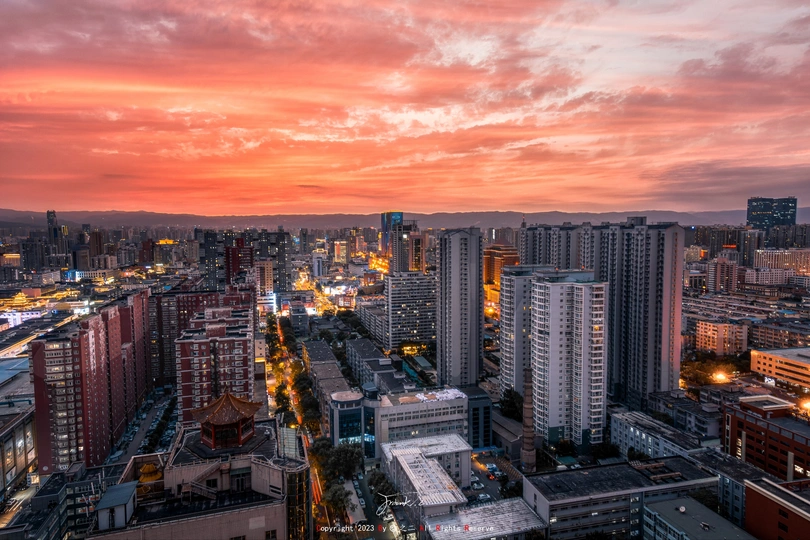 回不去的时间总会有他的道理 地点:太原市城东街 拍摄:谁能想到路上的艰辛,在还没到日落时候,天气一片阴沉。主打一个去了可能拍不到,但是不去一定拍不到的道理。就急匆匆的去机位。在爬上楼刚开门的一瞬间,眼前被一片红所笼罩,心情直接变得激动起来。诚不负我赌狗一把。拍到了这组龙城盛世晚霞。