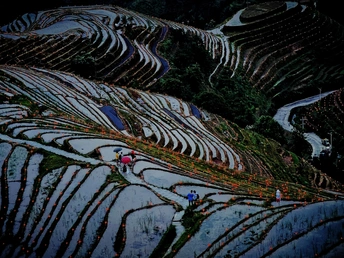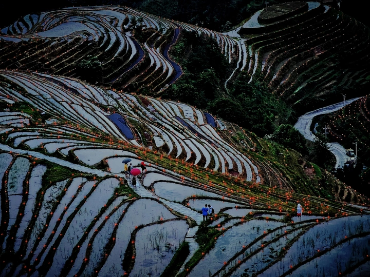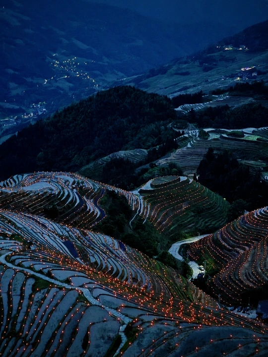 小满节气日,赶着插秧前到龙脊拍波光粼粼的梯田,从阳光明媚拍到细雨纷纷再到夜幕下的宝石蓝天空,真的很美