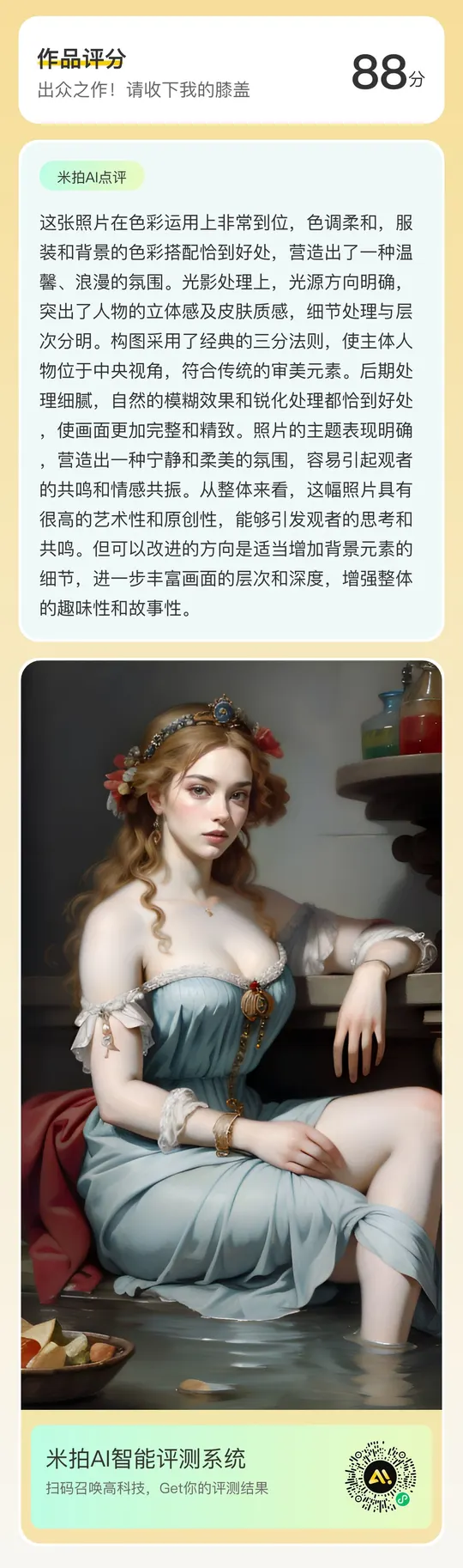 我成功欺骗了一次AI, 它给自己的绘画打了高分[偷笑] 不过,这确实是一幅不错的古典油画