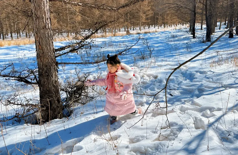 在那宛如梦幻的童话森林中,阳光透过金黄的树枝,洒下斑驳的光影。母亲牵着女儿的小手,缓缓地行走在铺满白雪的小径上。微风轻拂,在这里,时间仿佛静止,只留下母女间那无尽的温暖与爱意,在童话森林中静静蔓延……