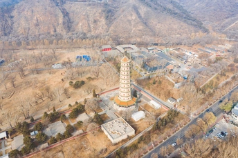 航拍河北省承德市避暑山庄城市天际线舍利塔