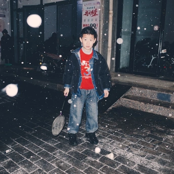 2024年2月2日,陕西蒲城,雪中打羽毛球的男孩。