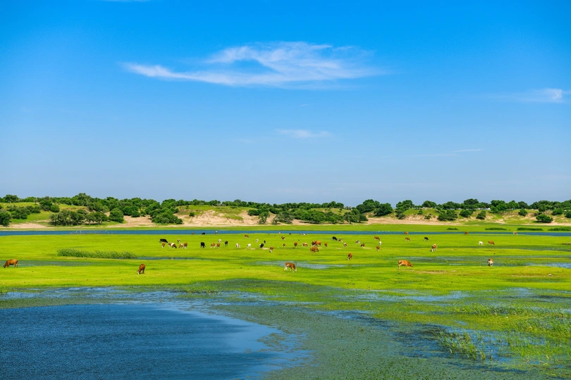 黑龙江省大庆市杜尔伯特嫩江江畔湿地风光