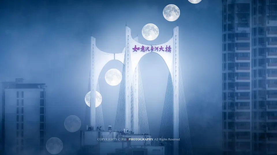 如意洸府河大桥悬月
