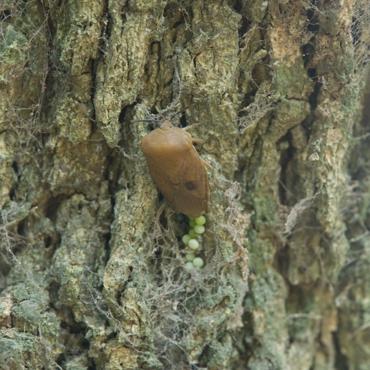 一只荔蝽正在产卵。