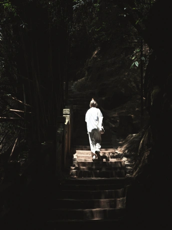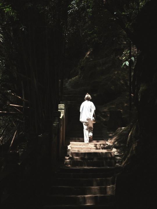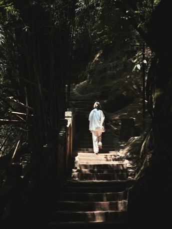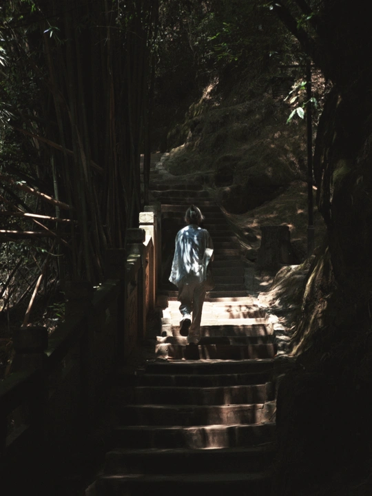 当我与她擦肩而过,转身瞬间,她刚好走进那束白光中,洁白衣服,透过阳光,竹影印在背影中,她缓缓走上去,周围仿佛安静下来