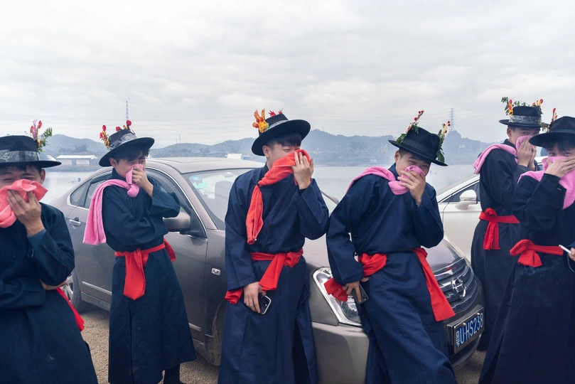 有人在放鞭炮,有点呛。游神队伍中的年轻人,用装饰用的毛巾捂鼻。