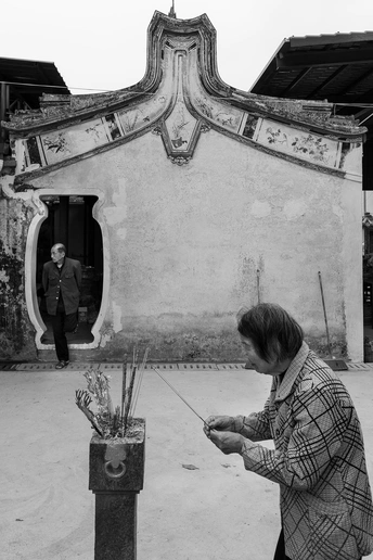 老人上香求平安