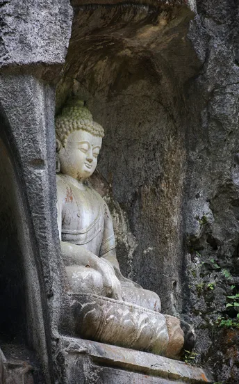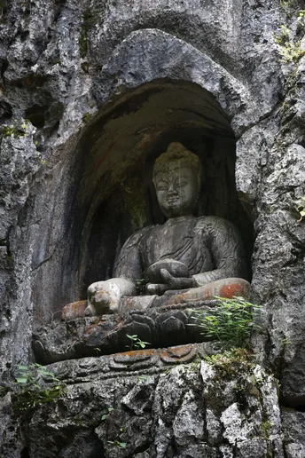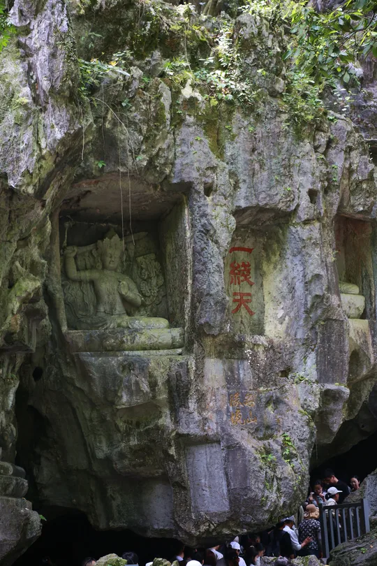 飞来峰景区随拍 飞来峰是杭州灵隐寺前的飞来峰,又名灵鹫峰,山高168米,山体由石灰岩构成。由于长期受地下水溶蚀作用,飞来峰形成了许多奇幻多变的洞壑,如龙泓洞、玉乳洞、射旭洞、呼猿洞等,洞洞有来历,极富传奇色彩。飞来峰的厅岩怪石,如蛟龙,如奔象,如卧虎,如惊猿,仿佛是一座石质动物园。山上老树古藤,盘根错节;岩骨暴露,峰棱如削。明人袁道曾盛道:“湖上诸峰,当以飞来为第一。”据前人记载,飞来峰过去有72洞,但因年代久远,多数已湮没。现在仅存的几个洞,大都集中在飞来峰东南一侧。