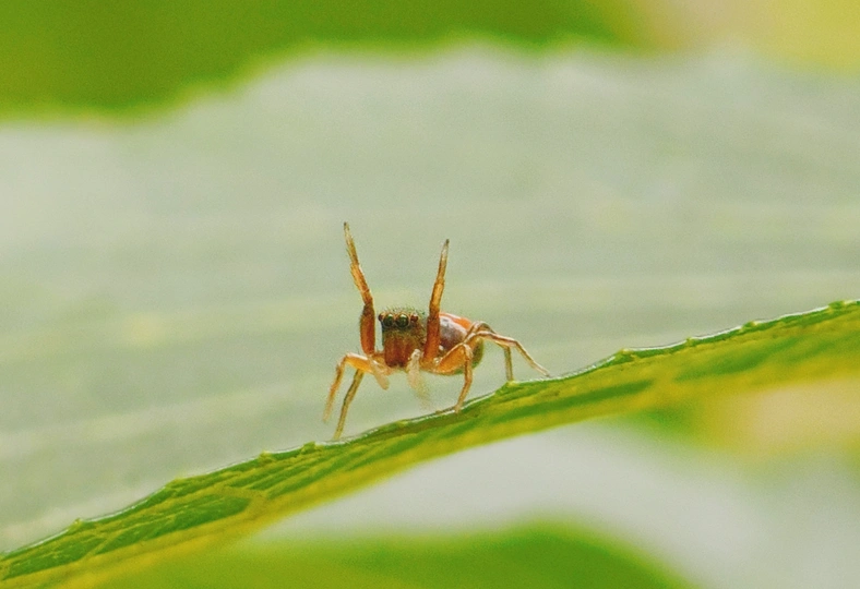 国产蜘蛛中的颜值担当,可以叫板澳洲孔雀蛛。 拍照时,兴奋地举着前肢跳舞,貌似在求偶。