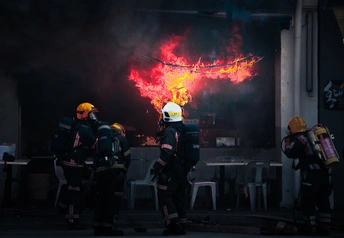 在新加坡遇到的一次火灾,发生在一家华人烧烤店。在媒体队伍到来前,我抢先按下了快门