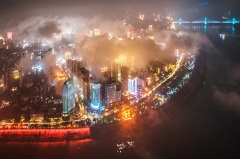 雨夜的宜昌,低云翻滚,城市灯光交织下,宛若仙境,更多了一份赛博朋克感。