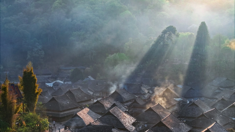 在云南的深山之中,有一个被时光遗忘的神秘古寨——糯干古寨。这个千年傣族古寨,宛如世外桃源般隐藏在景迈山的怀抱中。 糯干古寨古朴的傣族传统民居错落有致地分布在山坡上,屋顶层层叠叠,充满了原始的韵味。 清晨,登上寨子周边的观景台,可以俯瞰整个糯干古寨的全貌。太阳冉冉升起,阳光洒在古寨的屋顶上,泛起一层金色的光芒,整个寨子宛如一幅美丽的画卷。 漫步在糯干古寨的小巷中,仿佛穿越回了过去。这里的房屋全部为木质结构的干栏式建筑,一楼用于存放杂物和圈养牲畜,二楼则是主人的起居室。每栋房屋的顶部都有一对黄牛角作为装饰,这是糯干古寨独特的建筑风格。 寨子里的人们过着宁静而悠闲的生活,他们日出而作,日落而息,勤劳淳朴。妇女们身着传统的傣族服饰,在自家的茶园里忙碌着,男人们则在寺庙里诵经祈福。这里的人们热情好客,只要有游客路过,都会邀请他们进屋喝茶。 在糯干古寨,还可以品尝到正宗的傣族美食。当地的黄糯米粑粑香甜可口,让人回味无穷。此外,这里的茶叶也非常有名,品尝一杯香醇的普洱茶,感受着茶香在口中散开,仿佛所有的疲惫都烟消云散。 糯干古寨,用它的古朴和神秘吸引着每一个人。在这里,只有那份与世无争的宁静和祥和。