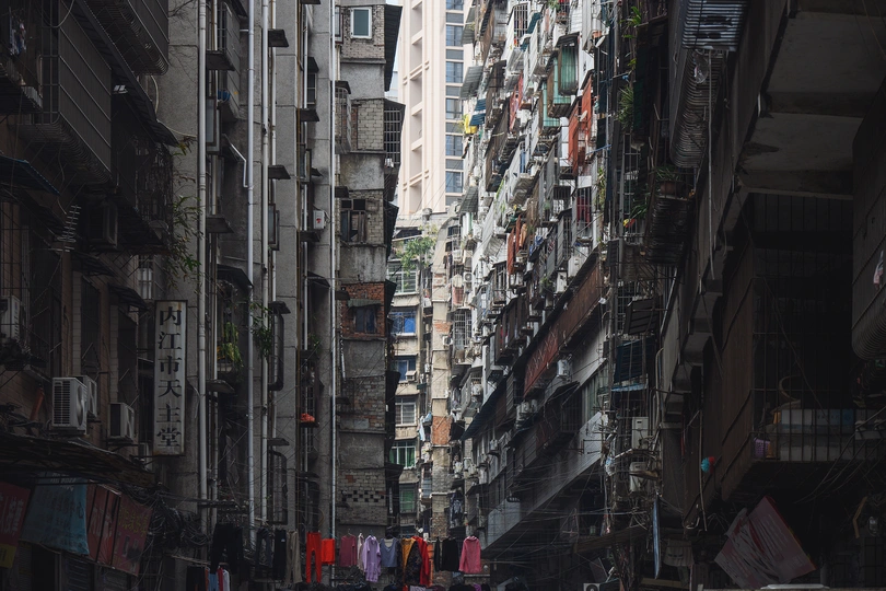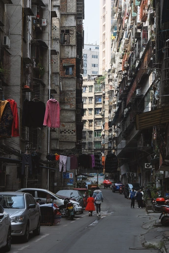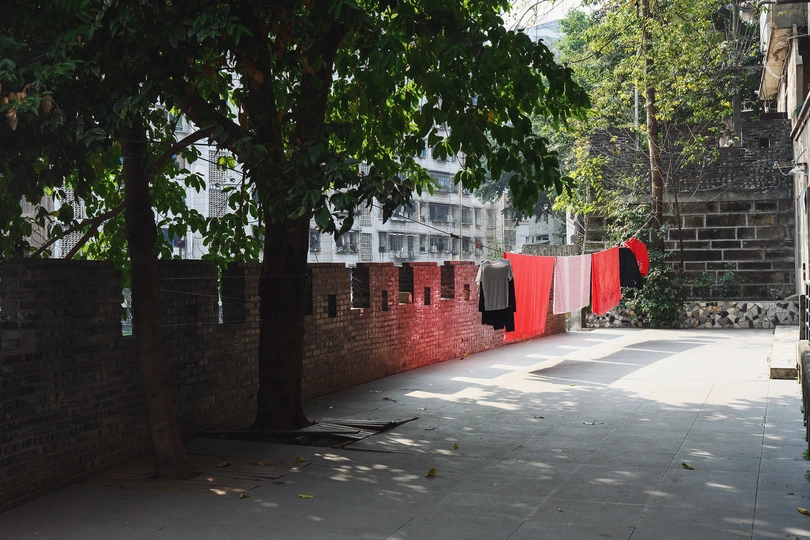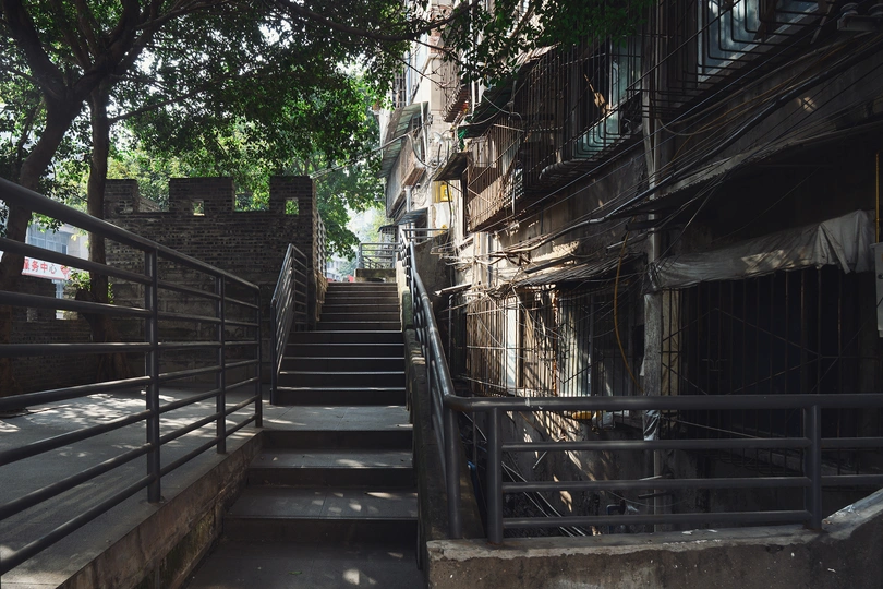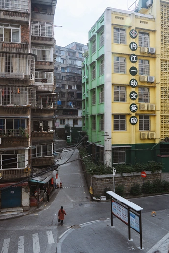 内江劳动巷,黄绿色的一幼,高楼夹缝中的小巷,以及和居民楼融为一体的古城墙都很有感觉。