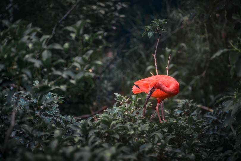 丛林中仿佛红色精灵般美丽动人的美洲红鹮