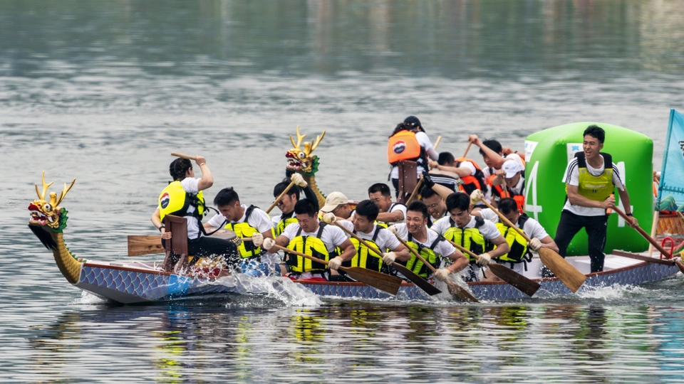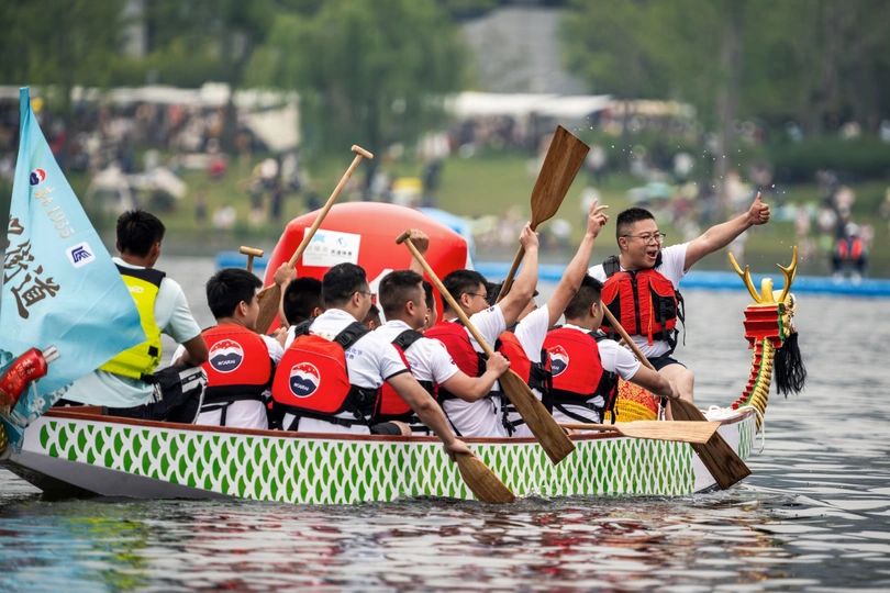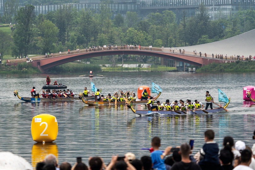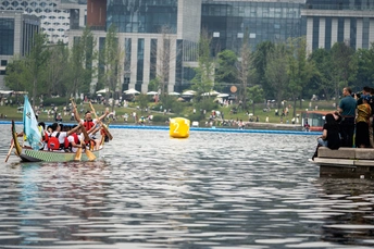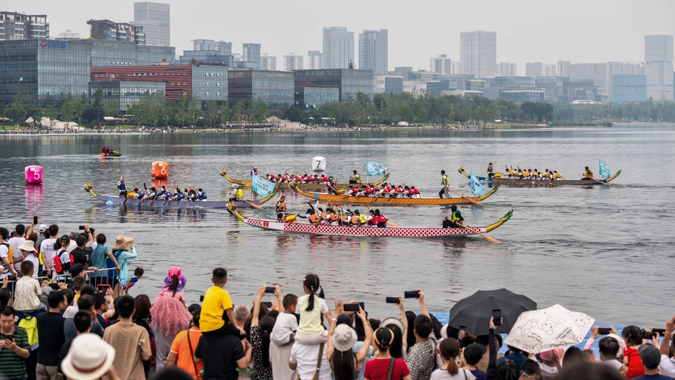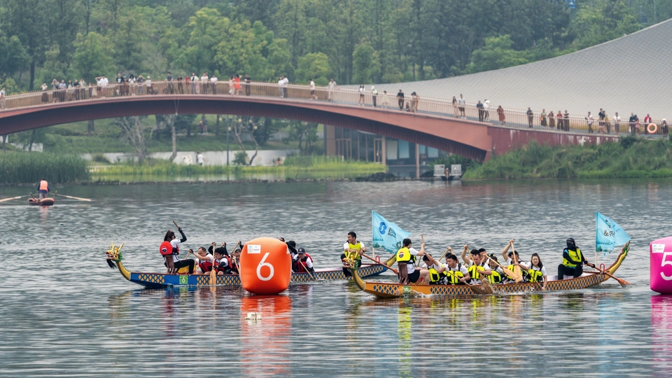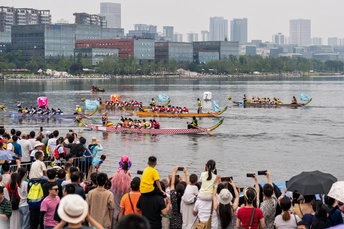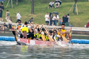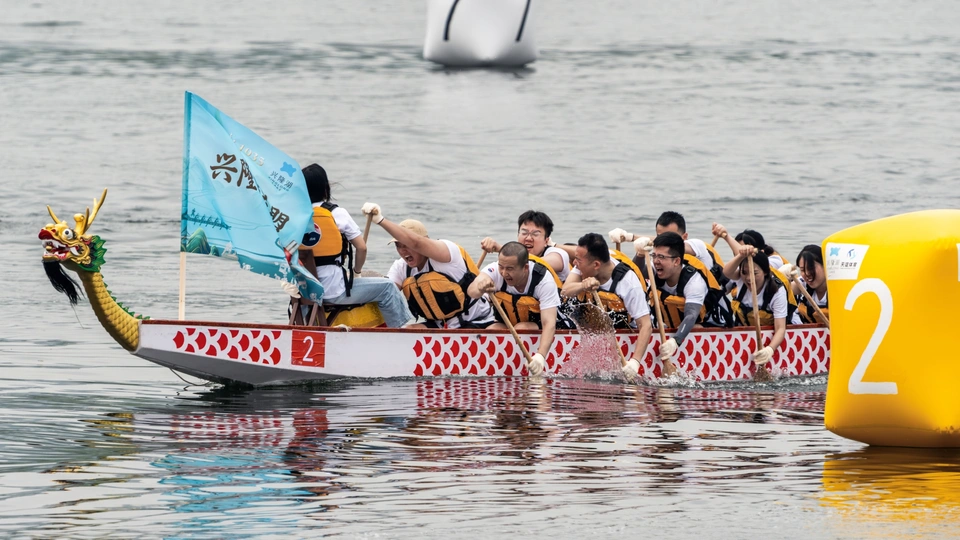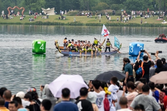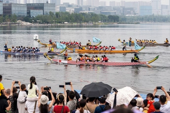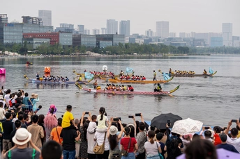 2024年6月10日,端午节,盛况空前!18支劲旅角逐200米直道,鼓声雷动,水花翻飞。岸边,观众热情如火,加油声、欢呼声此起彼伏,仿佛要将整个兴隆湖点燃。孩子们挥舞着小红旗,老人们脸上洋溢着笑容,每个人都沉浸在这端午的激情与欢乐中。