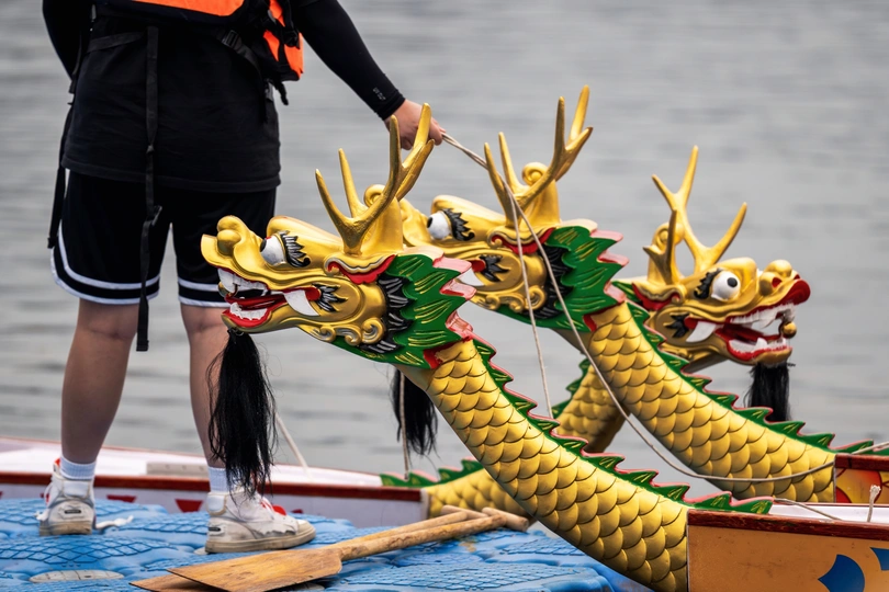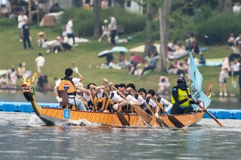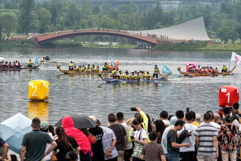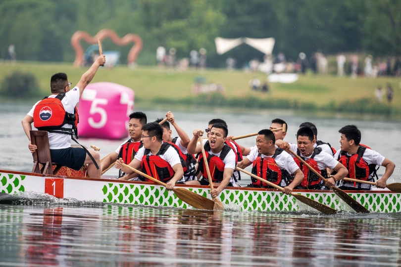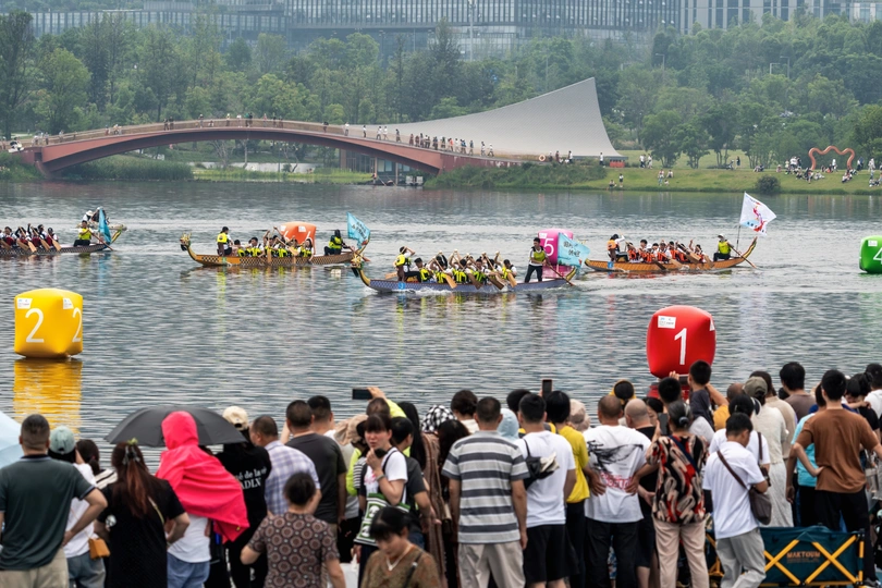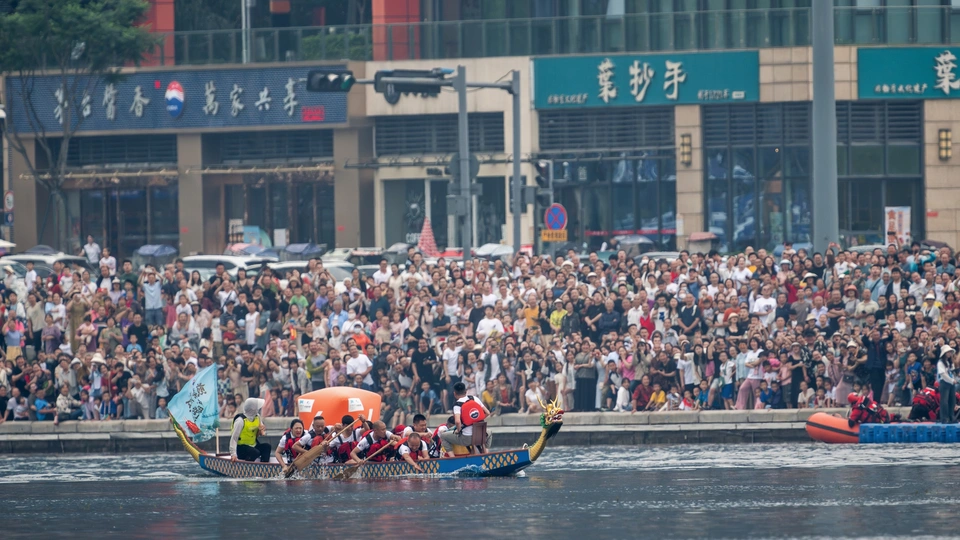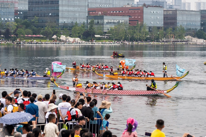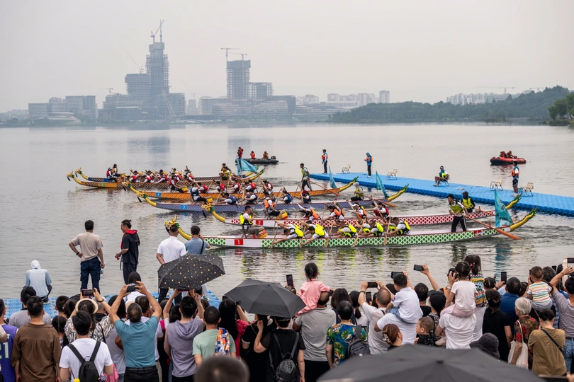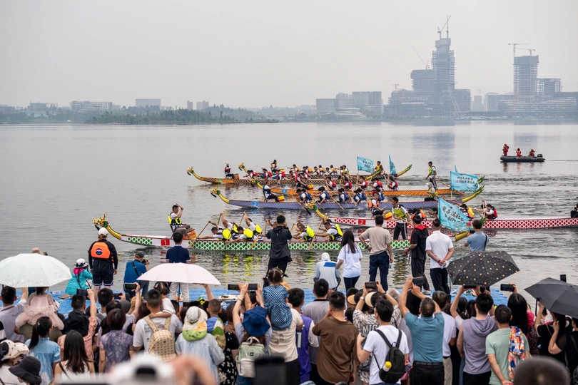 2024年6月10日,端午节,盛况空前!18支劲旅角逐200米直道,鼓声雷动,水花翻飞。岸边,观众热情如火,加油声、欢呼声此起彼伏,仿佛要将整个兴隆湖点燃。孩子们挥舞着小红旗,老人们脸上洋溢着笑容,每个人都沉浸在这端午的激情与欢乐中。