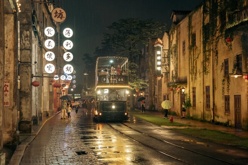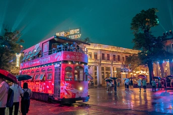 雨中漫游开平赤坎古镇 这个5.1假期,终于和家人一起再次来到升级改造之后的开平赤坎古镇,上一次来是2016年,还没商业化改造前,当年古镇里的商户和我们说,你们这次来是最后看到古镇原来的样子了,我们全部都要搬出古镇了。图一就是我2016年拍下的珍贵照片之一。这次来是冒着绵绵细雨,漫游了改造后的赤坎古镇,感觉并没有传言中那么的不堪,古老建筑物的精华还是保留了下来,还融入了不少中西合璧的建筑物,尤其是晚上华灯初上,霓虹灯亮起了之后,更重现了古镇当年的繁华景象,叮叮车带我们仿佛穿越回了当年的赤坎。恰逢江门市在推广三点三传统习俗,百米食街各种特色美食档口都排起了长龙,听商户说现在的生意额是以前的好几倍,他们由衷的感叹,开平的发展变化真是非常大。 #江门三点三精彩之旅, #开平赤坎古镇