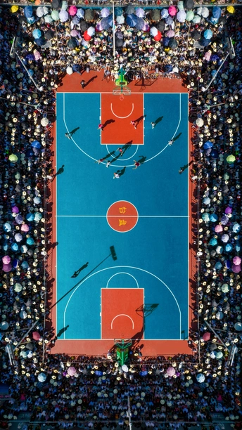 贵州台盘村BA比赛现场。光影闪动,人声鼎沸。